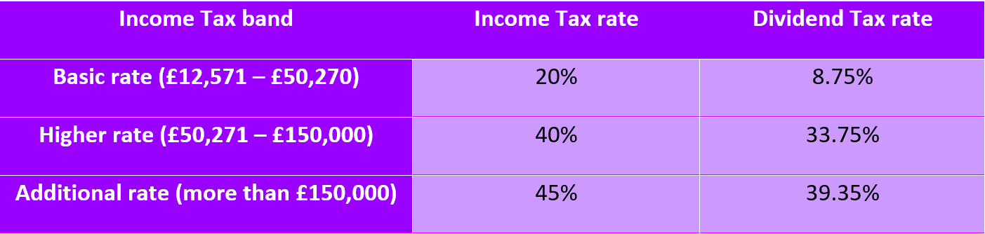 The table below shows the Income Tax and Dividend Tax rates in 2022/23: